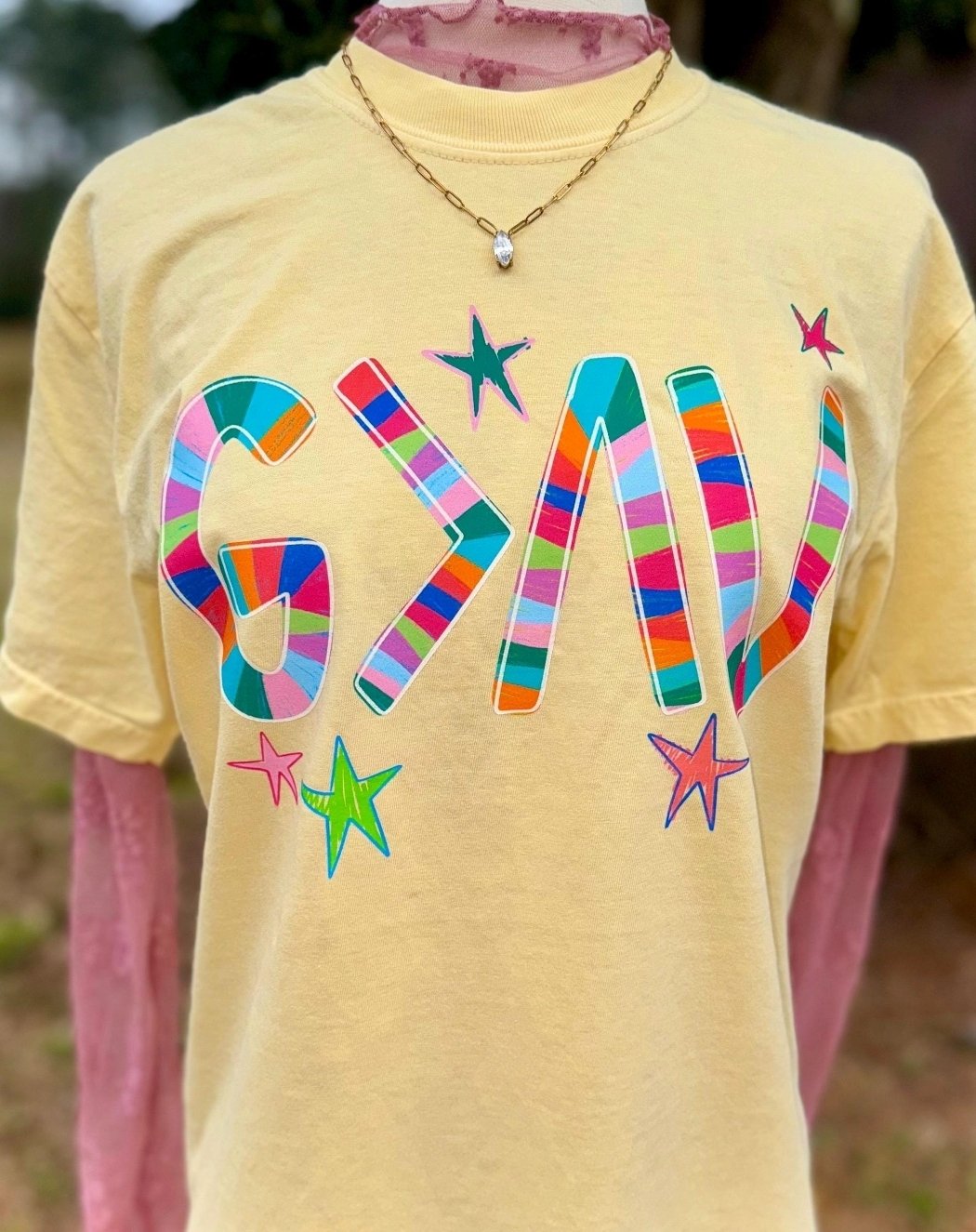 A bold faith statement with a vibrant twist! This eye-catching graphic features colorful, retro-inspired lettering that reminds you that God is greater than every mountain and every valley. Printed on a soft, comfortable tee, it’s perfect for everyday wear, church gatherings, or sharing your faith in style. 💛